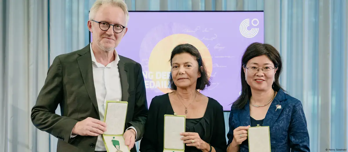 Dolayısıyla, Çinli dilbilimci Li Yuan ve Belçikalı arkeolog David Van Reybrouck ile birlikte kendisine verilen Goethe Madalyası'nı eşi Prof. Ayşe Buğra aldı.